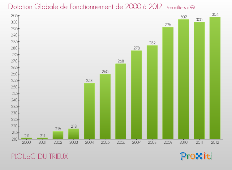 En effet, la dotation globale de fonctionnement versée par l'état en 2012 à la seule commune de Plouëc-du-Trieux était de : 304 000 € au total.