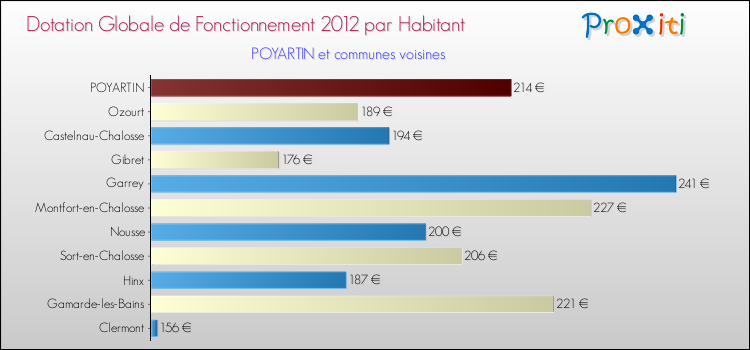 Dans le même temps, la Dotation Globale de Fonctionnement accordée aux communes françaises similaires à Poyartin était de 173 € par habitant, en 2012.