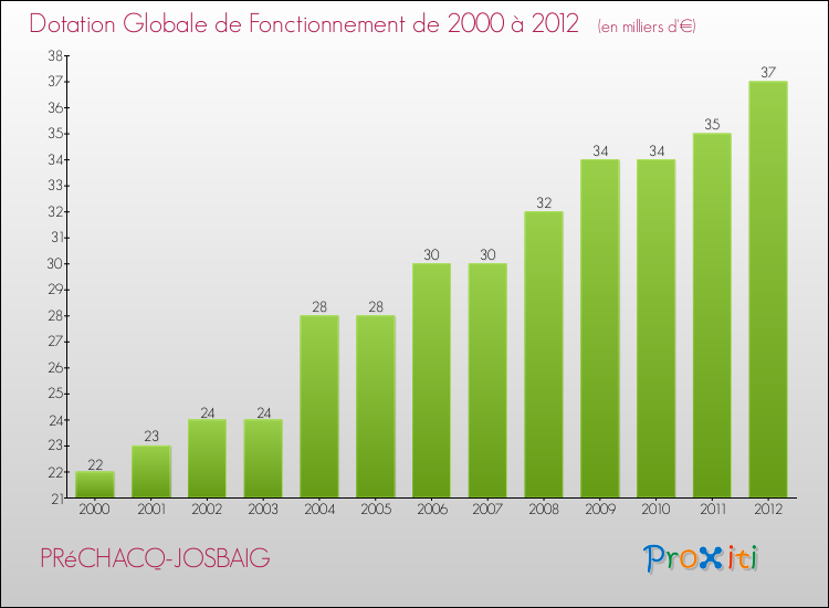 Evolution du montant de la Dotation Globale de Fonctionnement pour PRéCHACQ-JOSBAIG de 2000 à 2012