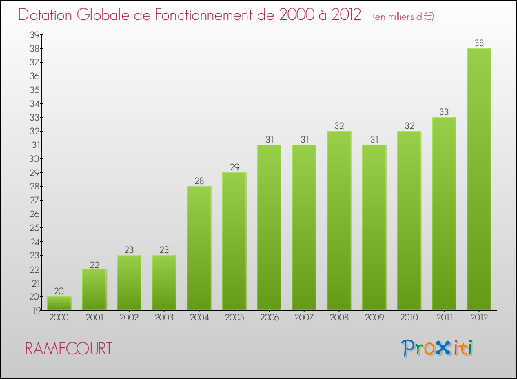 En effet, la dotation globale de fonctionnement versée par l'état en 2012 à la seule commune de Ramecourt était de : 38 000 € au total.