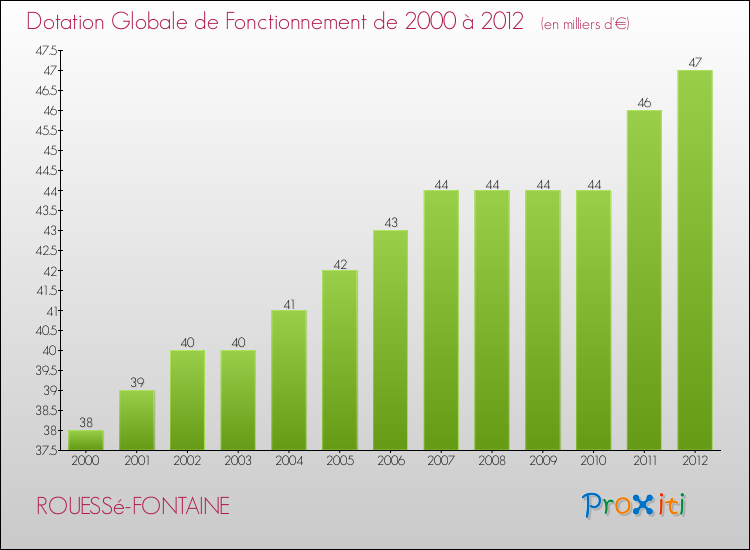 En effet, la dotation globale de fonctionnement versée par l'état en 2012 à la seule commune de Rouessé-Fontaine était de : 47 000 € au total.