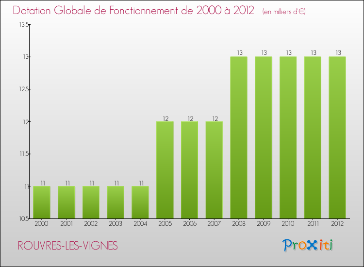 En effet, la dotation globale de fonctionnement versée par l'état en 2012 à la seule commune de Rouvres-les-Vignes était de : 13 000 € au total.