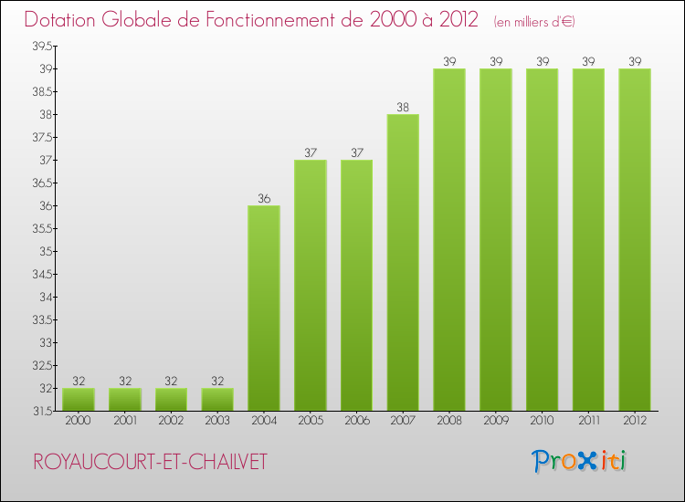 En effet, la dotation globale de fonctionnement versée par l'état en 2012 à la seule commune de Royaucourt-et-Chailvet était de : 39 000 € au total.