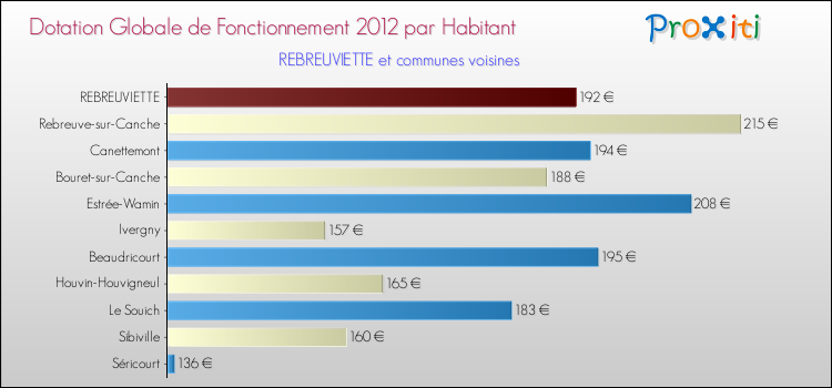 Le graphique ci dessous indique la Dotation Globale de Fonctionnement accordée par habitant à Rebreuviette en 2012 par rapport aux communes voisines.