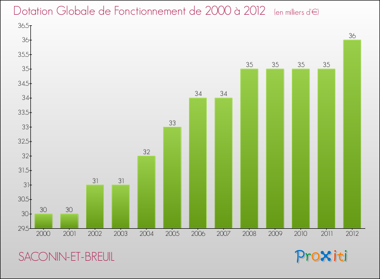 Evolution du montant de la Dotation Globale de Fonctionnement pour SACONIN-ET-BREUIL de 2000 à 2012