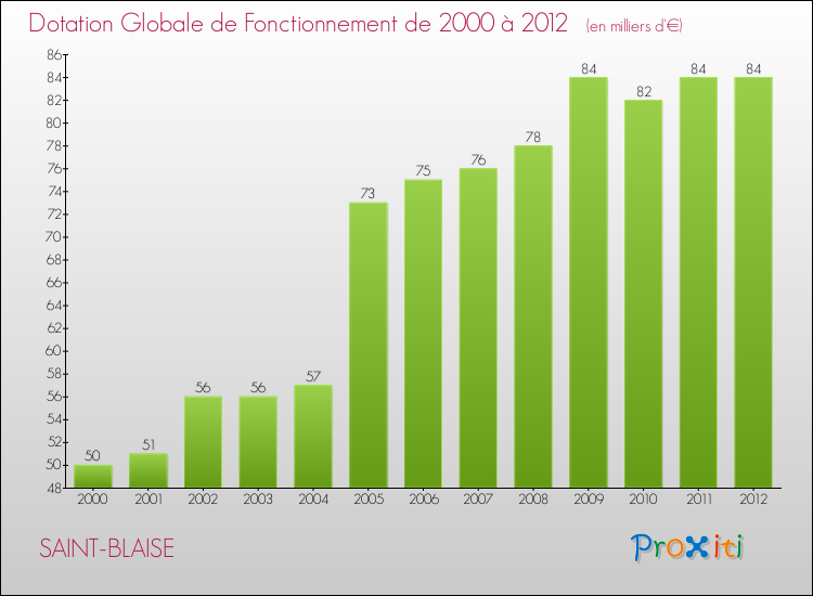 En effet, la dotation globale de fonctionnement versée par l'état en 2012 à la seule commune de Saint-Blaise était de : 84 000 € au total.