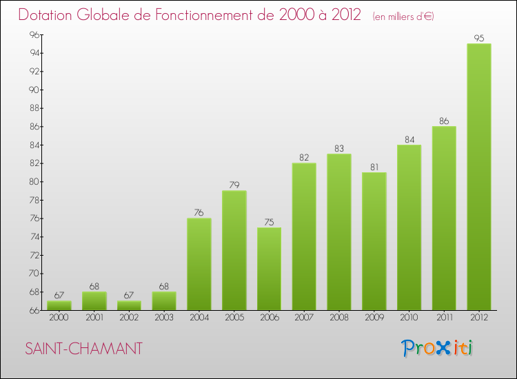 En effet, la dotation globale de fonctionnement versée par l'état en 2012 à la seule commune de Saint-Chamant était de : 95 000 € au total.
