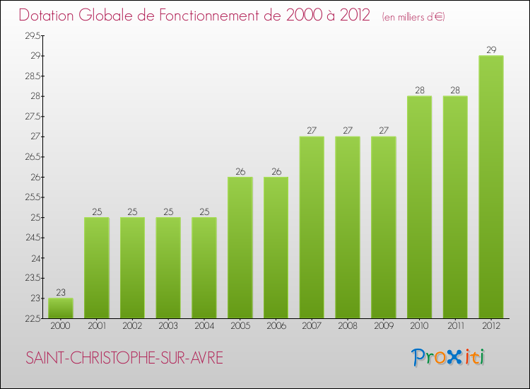 En effet, la dotation globale de fonctionnement versée par l'état en 2012 à la seule commune de Saint-Christophe-sur-Avre était de : 29 000 € au total.