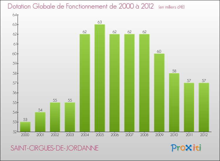 En effet, la dotation globale de fonctionnement versée par l'état en 2012 à la seule commune de Saint-Cirgues-de-Jordanne était de : 57 000 € au total.