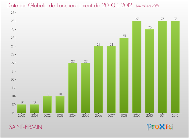 Dans le même temps, la Dotation Globale de Fonctionnement accordée aux communes françaises similaires à Saint-Firmin était de 228 € par habitant, en 2012.