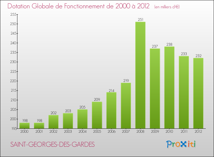 En effet, la dotation globale de fonctionnement versée par l'état en 2012 à la seule commune de Saint-Georges-des-Gardes était de : 232 000 € au total.