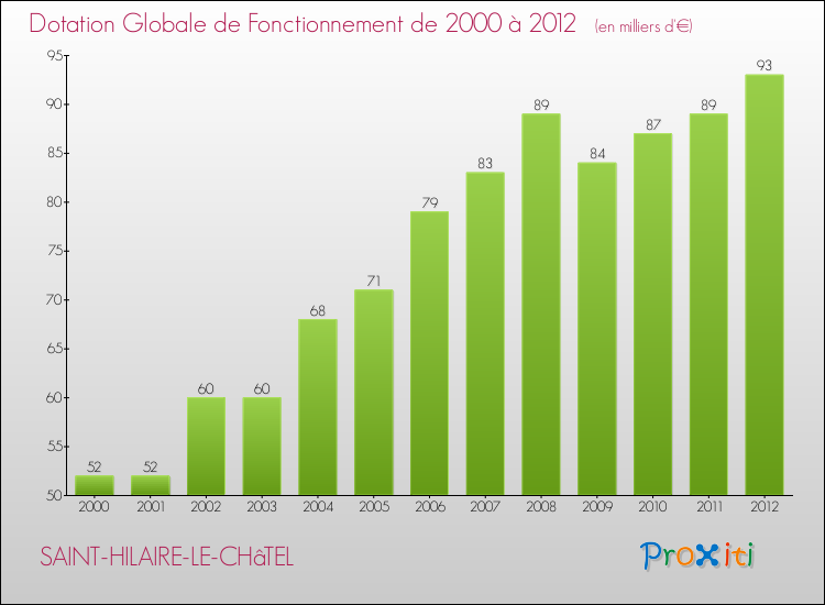 En effet, la dotation globale de fonctionnement versée par l'état en 2012 à la seule commune de Saint-Hilaire-le-Châtel était de : 93 000 € au total.