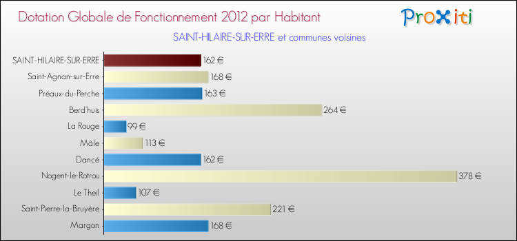 Le graphique ci dessous indique la Dotation Globale de Fonctionnement accordée par habitant à Saint-Hilaire-sur-Erre en 2012 par rapport aux communes voisines.