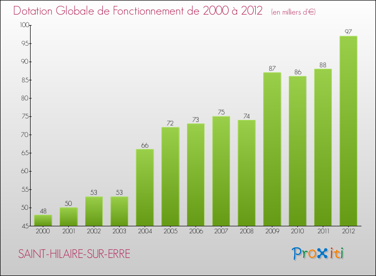 En effet, la dotation globale de fonctionnement versée par l'état en 2012 à la seule commune de Saint-Hilaire-sur-Erre était de : 97 000 € au total.