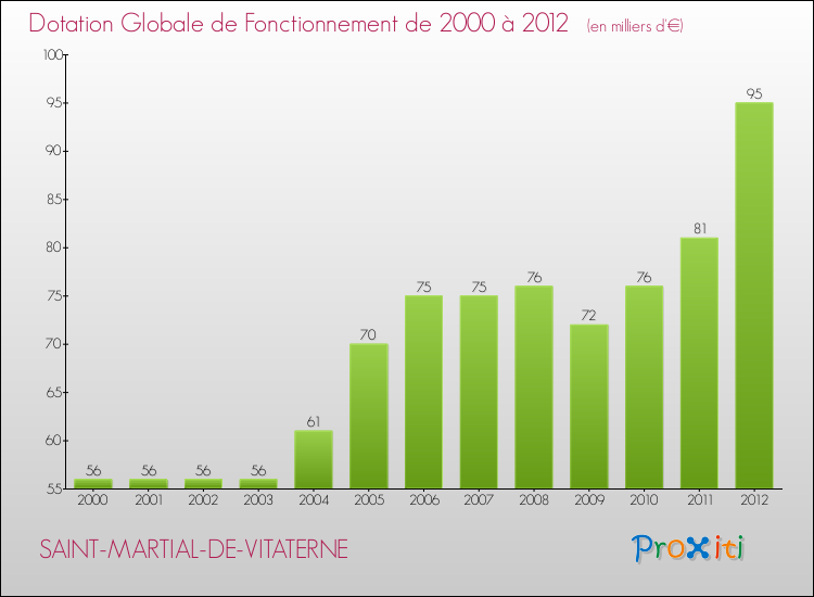 En effet, la dotation globale de fonctionnement versée par l'état en 2012 à la seule commune de Saint-Martial-de-Vitaterne était de : 95 000 € au total.
