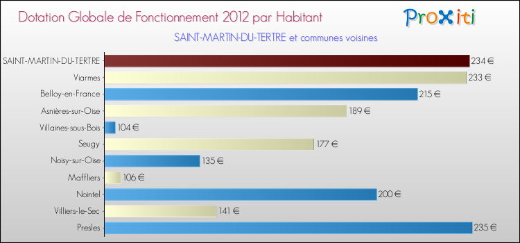 Le graphique ci dessous indique la Dotation Globale de Fonctionnement accordée par habitant à Saint-Martin-du-Tertre en 2012 par rapport aux communes voisines.