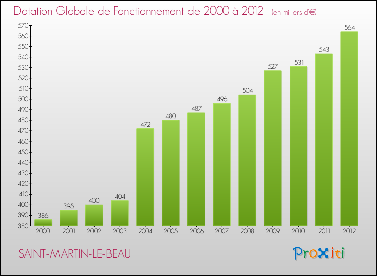 En effet, la dotation globale de fonctionnement versée par l'état en 2012 à la seule commune de Saint-Martin-le-Beau était de : 564 000 € au total.