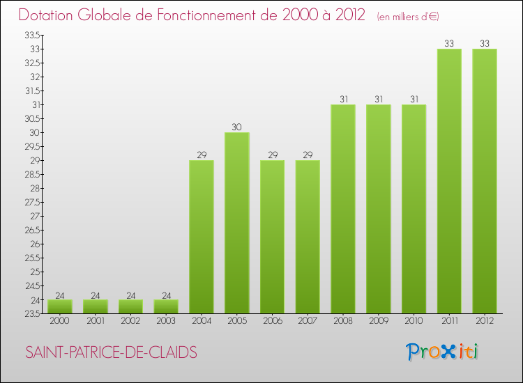 En effet, la dotation globale de fonctionnement versée par l'état en 2012 à la seule commune de Saint-Patrice-de-Claids était de : 33 000 € au total.