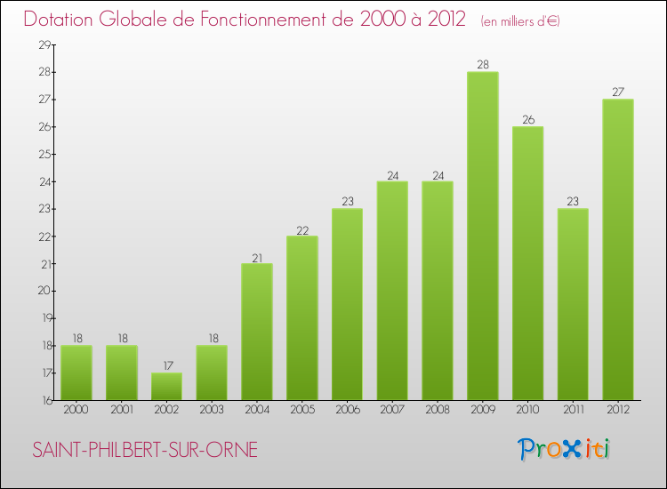 En effet, la dotation globale de fonctionnement versée par l'état en 2012 à la seule commune de Saint-Philbert-sur-Orne était de : 27 000 € au total.