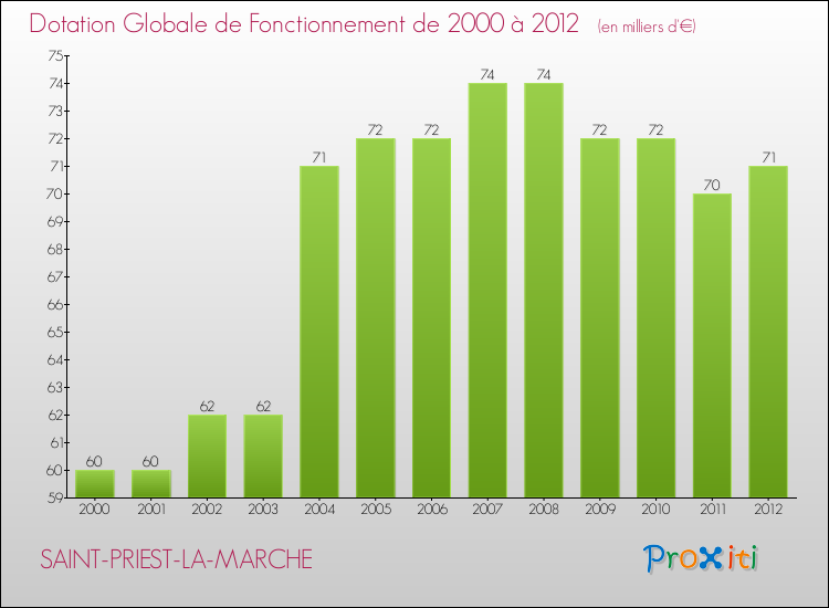 En effet, la dotation globale de fonctionnement versée par l'état en 2012 à la seule commune de Saint-Priest-la-Marche était de : 71 000 € au total.