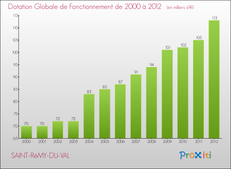 En effet, la dotation globale de fonctionnement versée par l'état en 2012 à la seule commune de Saint-Rémy-du-Val était de : 113 000 € au total.