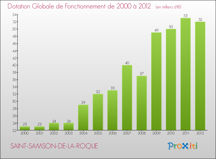 En effet, la dotation globale de fonctionnement versée par l'état en 2012 à la seule commune de Saint-Samson-de-la-Roque était de : 52 000 € au total.