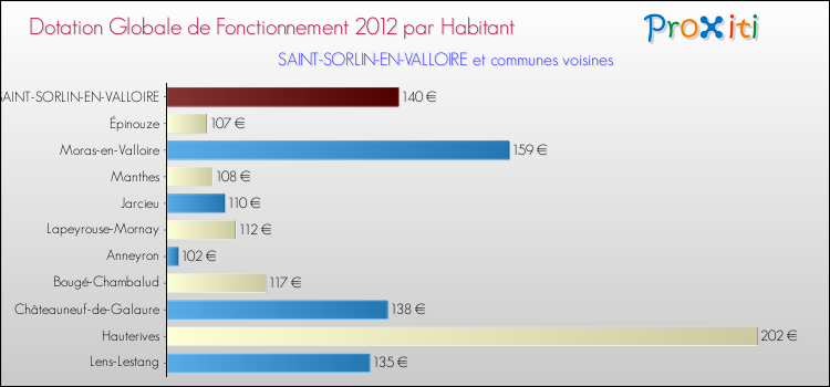 Le graphique ci dessous indique la Dotation Globale de Fonctionnement accordée par habitant à Saint-Sorlin-en-Valloire en 2012 par rapport aux communes voisines.