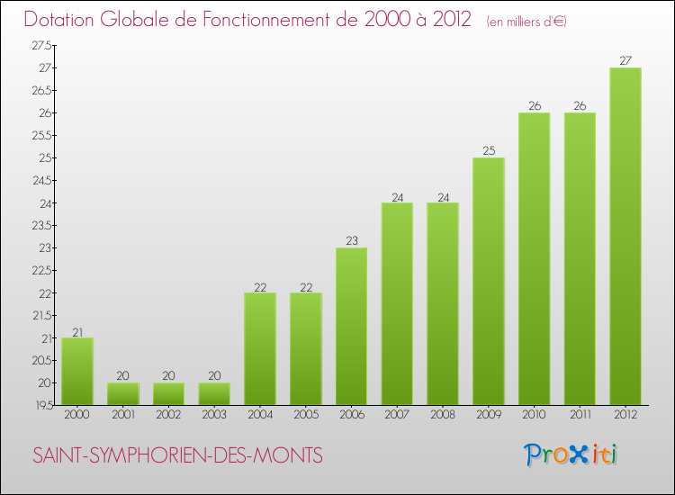 En effet, la dotation globale de fonctionnement versée par l'état en 2012 à la seule commune de Saint-Symphorien-des-Monts était de : 27 000 € au total.