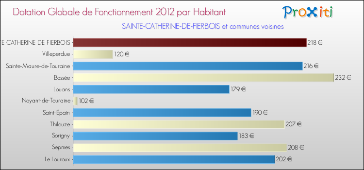 Le graphique ci dessous indique la Dotation Globale de Fonctionnement accordée par habitant à Sainte-Catherine-de-Fierbois en 2012 par rapport aux communes voisines.