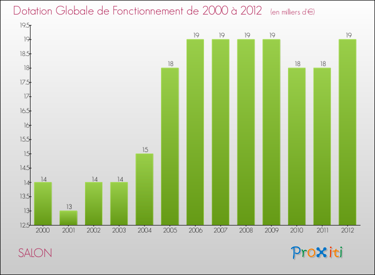 En effet, la dotation globale de fonctionnement versée par l'état en 2012 à la seule commune de Salon était de : 19 000 € au total.