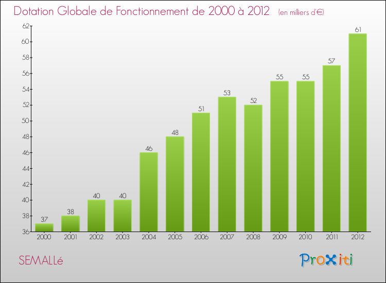 En effet, la dotation globale de fonctionnement versée par l'état en 2012 à la seule commune de Semallé était de : 61 000 € au total.