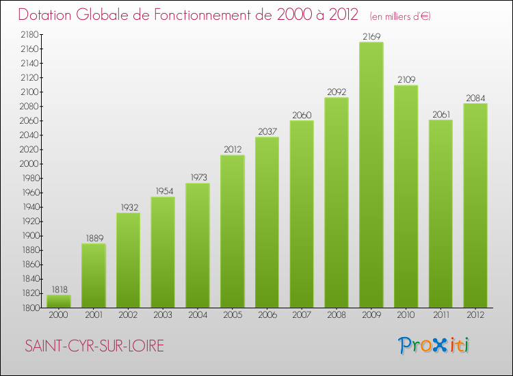 En effet, la dotation globale de fonctionnement versée par l'état en 2012 à la seule commune de Saint-Cyr-sur-Loire était de : 2 084 000 € au total.