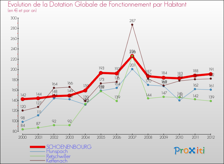 Rapporté aux 682 habitants de Schoenenbourg en 2012, cela représente 191 € par habitant.