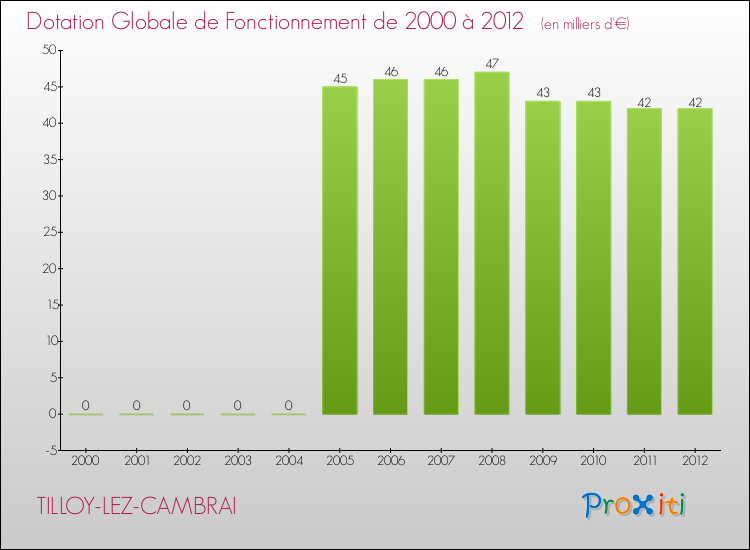 En effet, la dotation globale de fonctionnement versée par l'état en 2012 à la seule commune de Tilloy-lez-Cambrai était de : 42 000 € au total.