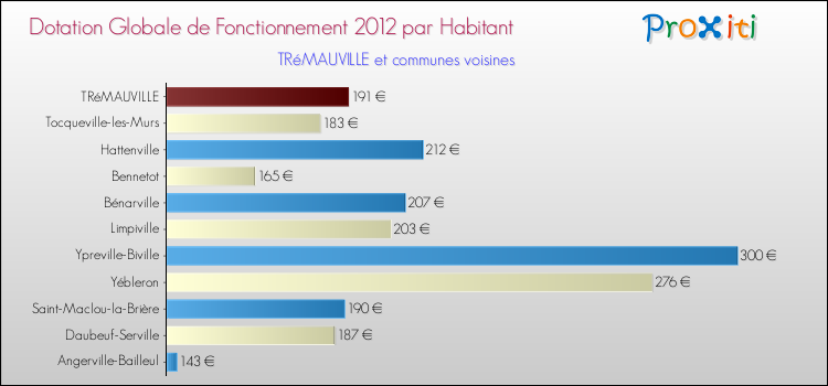 Le graphique ci dessous indique la Dotation Globale de Fonctionnement accordée par habitant à Trémauville en 2012 par rapport aux communes voisines.