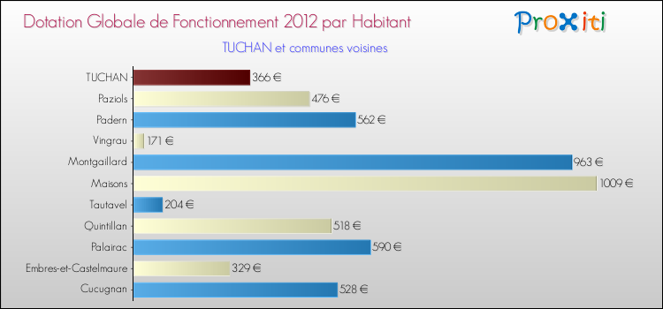 Rapporté aux 850 habitants de Tuchan en 2012, cela représente 366 € par habitant.