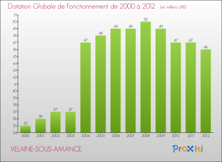En effet, la dotation globale de fonctionnement versée par l'état en 2012 à la seule commune de Velaine-sous-Amance était de : 46 000 € au total.