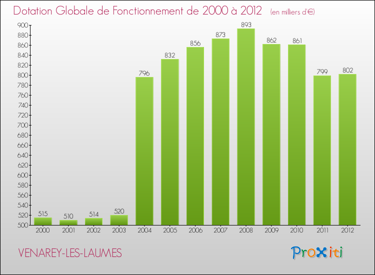 En effet, la dotation globale de fonctionnement versée par l'état en 2012 à la seule commune de Venarey-les-Laumes était de : 802 000 € au total.