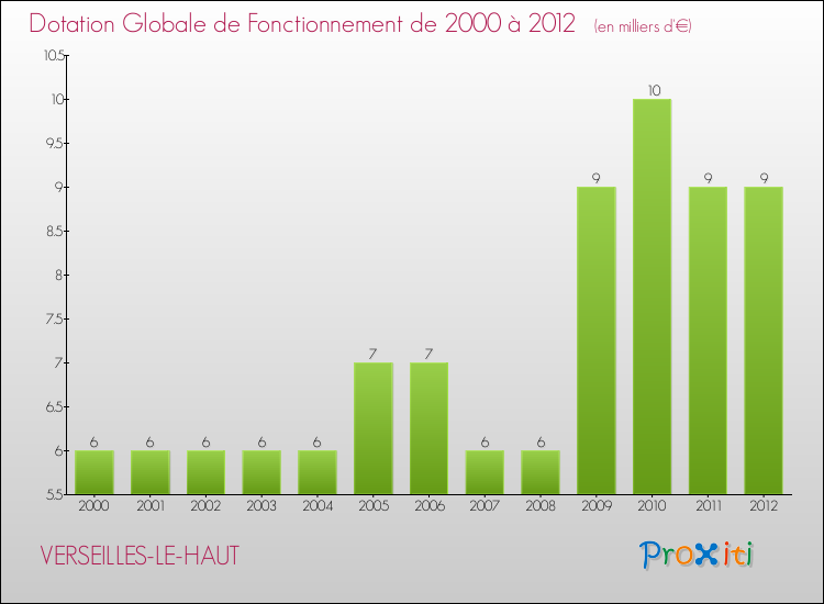 En effet, la dotation globale de fonctionnement versée par l'état en 2012 à la seule commune de Verseilles-le-Haut était de : 9 000 € au total.
