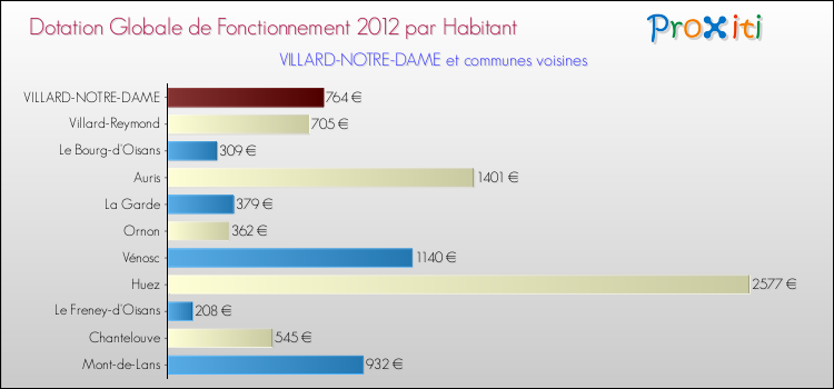 Le graphique ci dessous indique la Dotation Globale de Fonctionnement accordée par habitant à Villard-Notre-Dame en 2012 par rapport aux communes voisines.