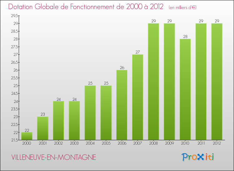 En effet, la dotation globale de fonctionnement versée par l'état en 2012 à la seule commune de Villeneuve-en-Montagne était de : 29 000 € au total.