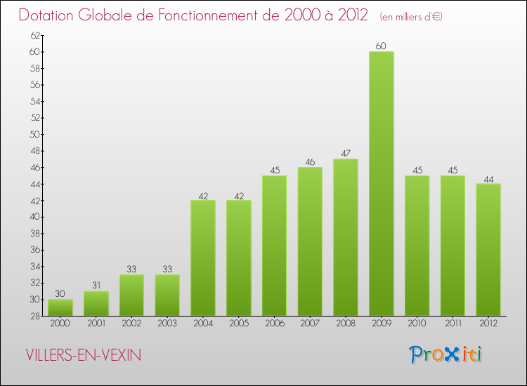 En effet, la dotation globale de fonctionnement versée par l'état en 2012 à la seule commune de Villers-en-Vexin était de : 44 000 € au total.