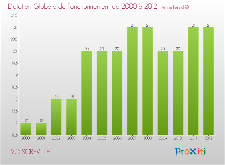 En effet, la dotation globale de fonctionnement versée par l'état en 2012 à la seule commune de Voiscreville était de : 21 000 € au total.
