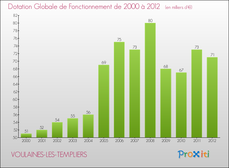En effet, la dotation globale de fonctionnement versée par l'état en 2012 à la seule commune de Voulaines-les-Templiers était de : 71 000 € au total.