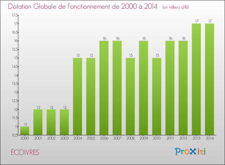 En effet, la dotation globale de fonctionnement versée par l'état en 2014 à la seule commune de Écoivres était de : 17 000 € au total.