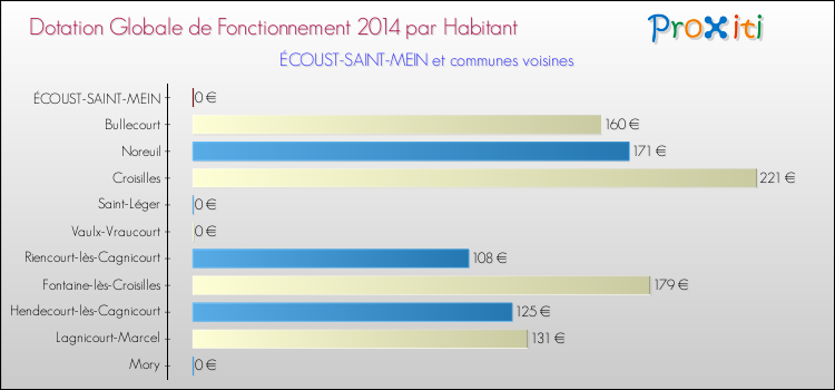 Le graphique ci dessous indique la Dotation Globale de Fonctionnement accordée par habitant à Écoust-Saint-Mein en 2014 par rapport aux communes voisines.