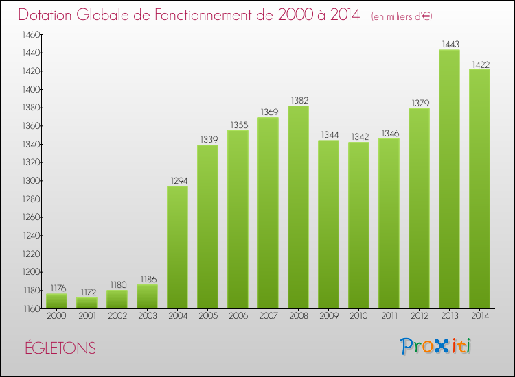 En effet, la dotation globale de fonctionnement versée par l'état en 2014 à la seule commune de Égletons était de : 1 422 000 € au total.