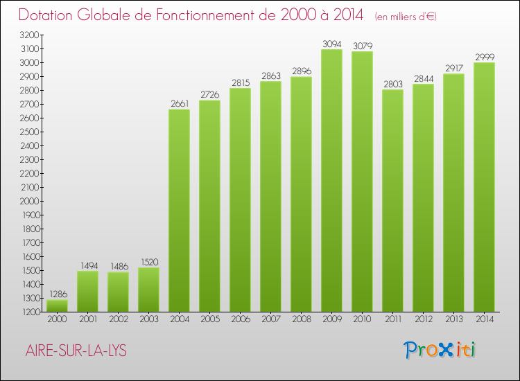 En effet, la dotation globale de fonctionnement versée par l'état en 2014 à la seule commune de Aire-sur-la-Lys était de : 2 999 000 € au total.