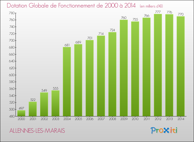 En effet, la dotation globale de fonctionnement versée par l'état en 2014 à la seule commune de Allennes-les-Marais était de : 770 000 € au total.