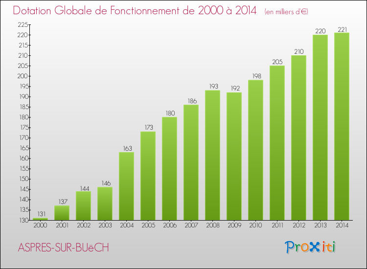 En effet, la dotation globale de fonctionnement versée par l'état en 2014 à la seule commune de Aspres-sur-Buëch était de : 221 000 € au total.